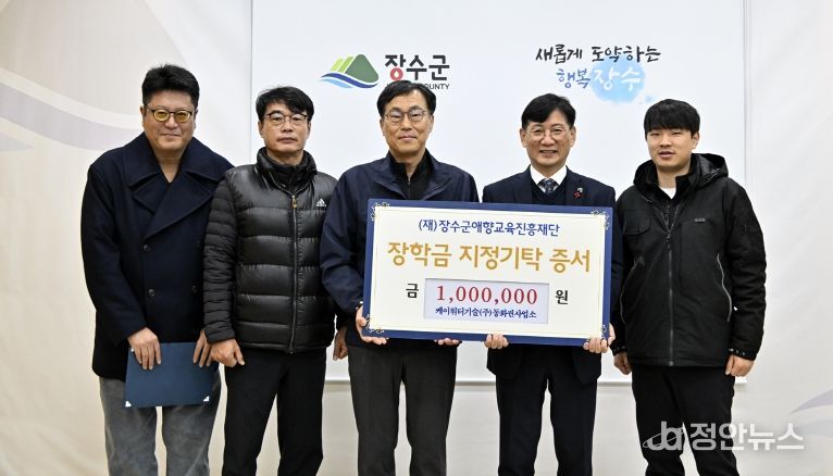 전달된 장학금은 장수군애향교육진흥재단을 통해 지역 학생들의 학업 지원과 교육 여건 개선을 위한 재원으로 활용될 예정이다.
