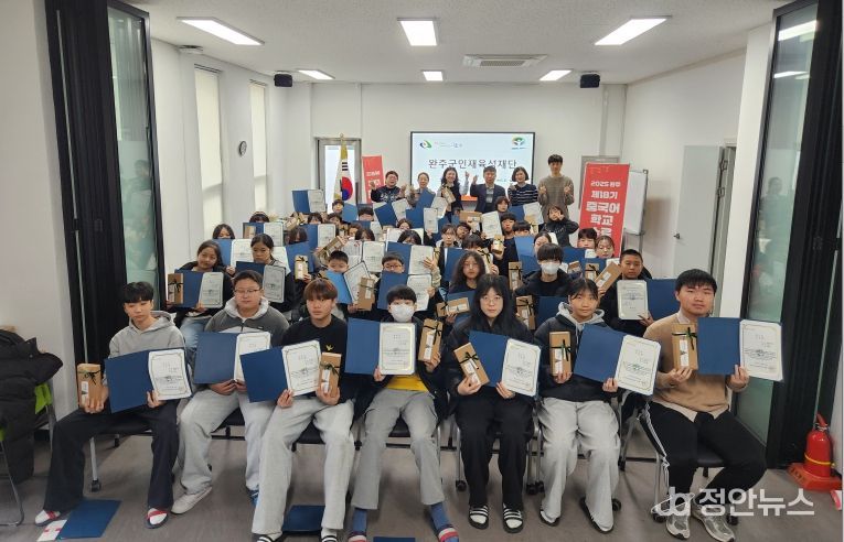 정안뉴스 안정주 기자 | 완주군인재육성재단이 글로벌 인재 양성을 목표로 운영한 ‘제18기 완주군 중국어학교’가 성료됐다.