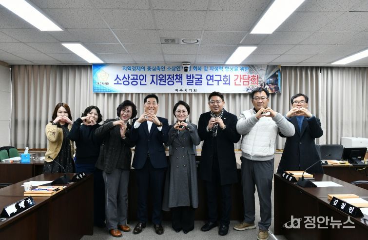 정안뉴스 안정주 기자 | 여수시의회 의원연구단체인 ‘소상공인 지원정책 발굴 연구회’(대표의원 민덕희, 소속 의원 이찬기·최정필·김철민·김채경)는 19일 시의회 운영위원회 회의실에서 최종 간담회를 열고, 지난 1년간 추진해 온 소상공인 지원정책 발굴 활동과 그 정책적 성과를 종합적으로 점검했다.