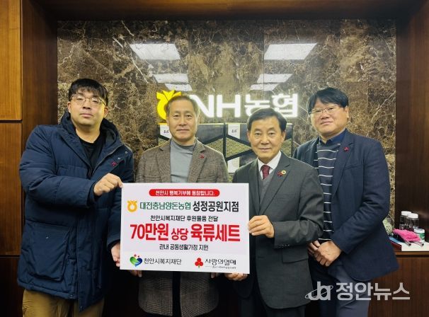 정안뉴스 황도연 기자 | (재)천안시복지재단은 19일 대전충남양돈농협 성정공원지점이 취약계층 아동·청소년을 위해 70만 원 상당의 육류세트를 기탁했다고 밝혔다.
