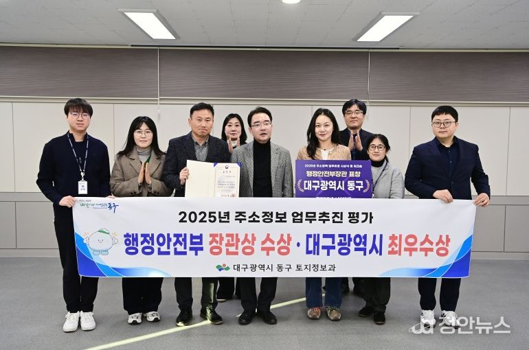 정안뉴스 안정주 기자 | 대구 동구청은 행정안전부가 주관하는 ‘2025년 주소정책 업무추진 평가’에서 행정안전부 장관 표창을 수상했다.