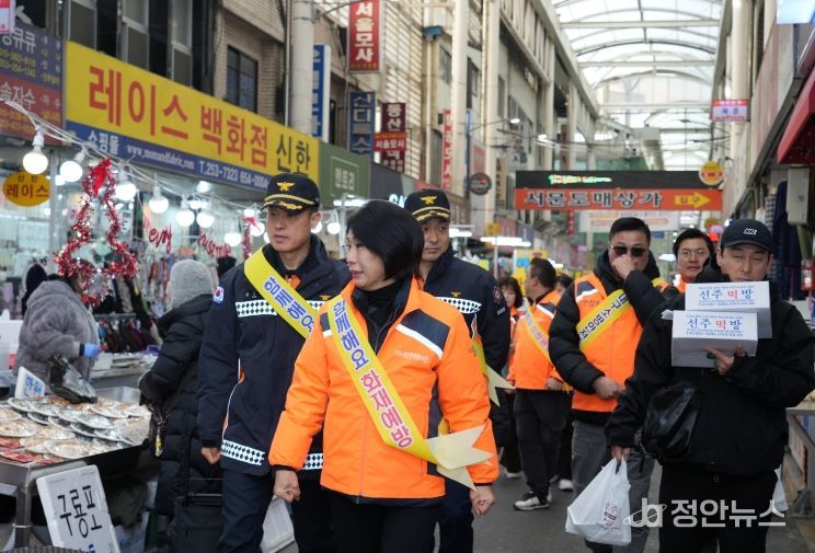 정안뉴스 안정주 기자 | 대구소방안전본부와 119시민안전봉사단연합회는 12월 23일 오전 11시, 겨울철 화재 위험이 높아지는 시기를 맞아 전통시장을 대상으로 화재예방 캠페인을 실시했다.