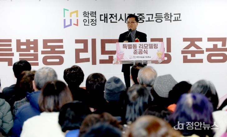 정안뉴스 안정주 기자 | 대전시의회 조원휘 의장은 24일 대전시립중고등학교 특별동 리모델링 공사 준공식에 참석해 준공을 축하하며, 배움을 향한 만학도들의 꿈과 용기를 응원했다.