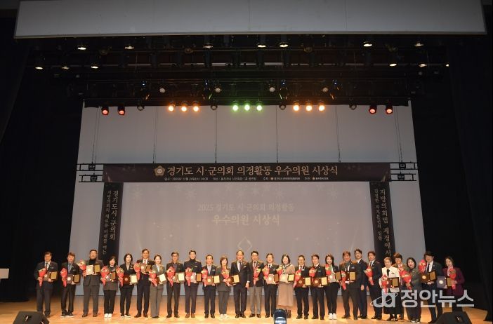 정안뉴스 안정주 기자 | 경기도시·군의회의장협의회(회장 김승호)는 2025년 12월 24일(수) 오후 2시, 동두천시 시민회관 1층 공연장에서 '2025 경기도시·군의회 의정활동 우수의원 시상식'을 개최했다.