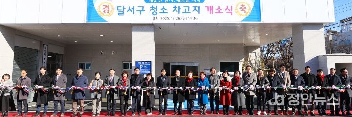 정안뉴스 안정주 기자 | 대구 달서구는 지난 26일 청소차량의 효율적 관리를 위해 청소차 차고지 신청사 개소식을 개최하고, 본격적인 운영에 들어간다.