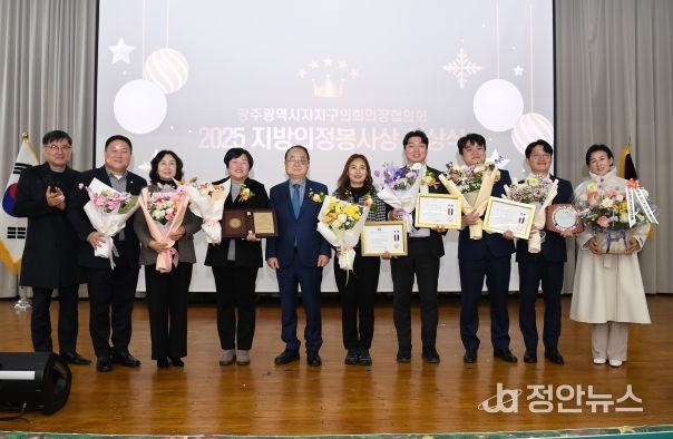 정안뉴스 안정주 기자 | 광주 북구의회 손혜진‧황예원‧정재성‧신정훈 의원이 지난 26일 열린 광주광역시자치구의회의장협의회가 주최한 ‘2025년도 하반기 대한민국지방의정봉사상 수여식’에서 지방의정봉사상 수상의 영예를 안았다.