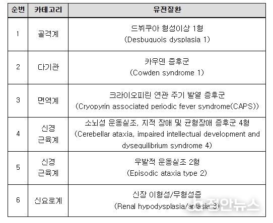 이번에 추가 선정된 질환은 2025년 10월 16일까지 접수된 질환을 대상으로 검토가 이루어졌으며, 접수된 질환 중 DYNC2H1-related short rib syndrome은 기존 검사 가능 유전질환과 동일질환이라 추가 선정하지 않았다. 또한 접수 질환 중 Atypical Teratoid Rhabdoid Tumor(ATRT)는 추가 검토가 진행 중이다.