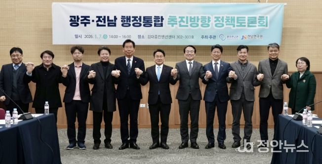정안뉴스 안정주 기자 | 광주연구원과 전남연구원은 7일 오후 김대중컨벤션센터에서 광주·전남 행정통합 추진 필요성에 대한 사회적 공감대를 확보하고 성공적 통합 방안을 모색하기 위해 ‘광주·전남 행정통합 추진 방향 정책토론회’를 개최했다.