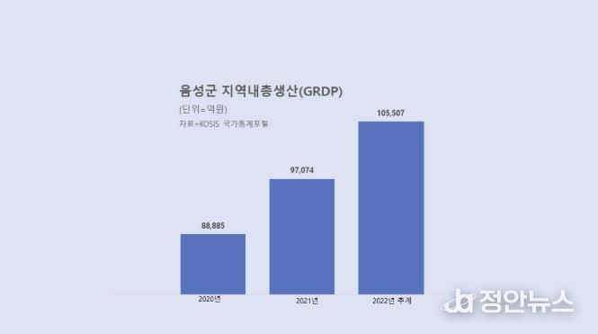 군에 따르면 약 3000개의 기업이 거둔 경영 실적이 지역의 가파른 성장으로 이어지며, 2022년 기준 지역내총생산 10조 5507억원을 기록했다. 이는 충북도 내 12.4%를 차지하는 비중으로 9년 연속 도내 2위 자리를 지켰고, 특히 전국 82개 군 단위 기초지자체 중에서는 울주군에 이어 전국 2위의 성적을 거뒀다.