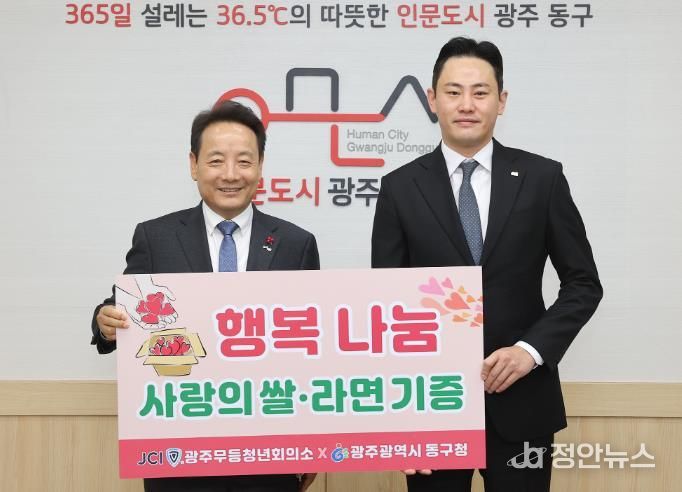 정안뉴스 안정주 기자 | 광주 동구는 광주무등청년회의소가 지난 9일 지역 내 취약계층의 따뜻한 겨울나기 지원을 위해 백미와 라면을 후원했다고 밝혔다.