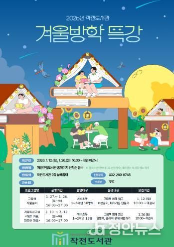 정안뉴스 안정주 기자 | 재단법인 인천광역시계양구인재양성장학교육재단 작전도서관에서는 2026년 겨울방학을 맞아 어린이를 위한 다양한 방학 특강 프로그램을 운영한다.