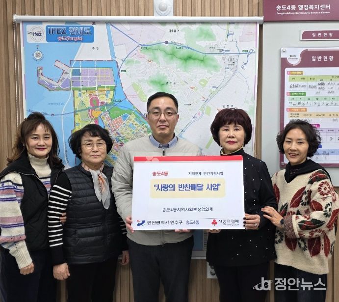 정안뉴스 안정주 기자 | 연수구 송도4동 지역사회보장협의체(위원장 박일희·양만상)는 12월까지 ‘사랑의 반찬배달 사업’을 추진한다.