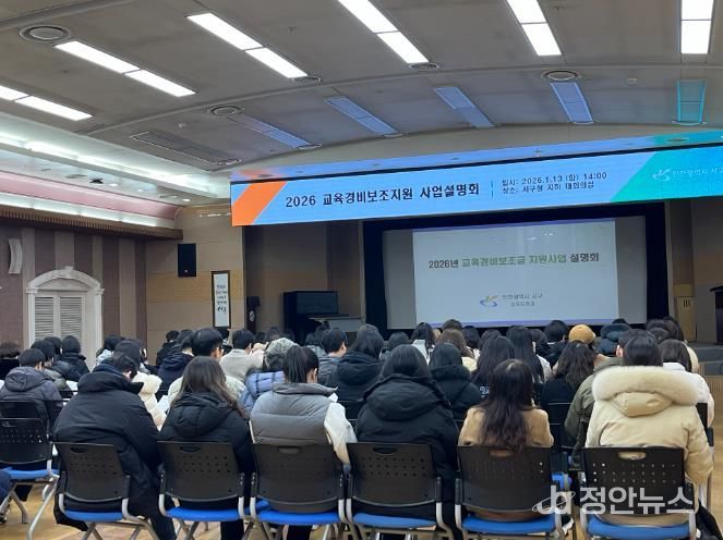 정안뉴스 안정주 기자 | 인천광역시 서구는 2026년도 교육경비 보조지원 사업의 원활한 추진을 위해 관내 초·중·고·특수학교 교육경비사업 담당 실무자 84명이 참석한 가운데 ‘2026년 교육경비보조지원 사업설명회’를 개최했다.