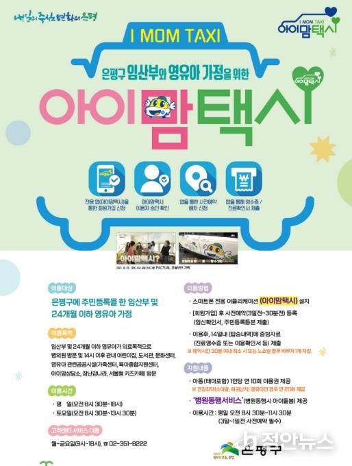 정안뉴스 안정주 기자 | 서울 은평구는 임산부와 영유아 가정의 이동 편의를 돕는 ‘아이맘택시’ 사업을 지속적으로 추진하고 있다고 밝혔다.