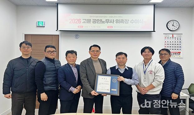 정안뉴스 안정주 기자 | 연수구시설안전관리공단(이사장 직무대행 장해윤)은 지난 15일 공단 대회의실에서 2026년 고문 공인노무사 위촉장 수여식을 개최했다고 밝혔다.