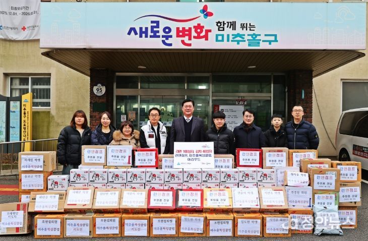 이번 전달식에는 런앤점프, 미추홀복싱클럽, 아리푸드 등 지역 사회 후원처가 참여해 라면 100상자와 김치 40상자를 전달했다.