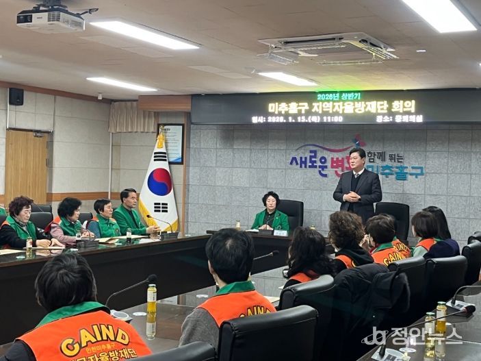 정안뉴스 안정주 기자 | 인천 미추홀구는 지난 15일 구청 중회의실에서 2026년 상반기 미추홀구 지역자율방재단(단장 전선자) 회의를 개최했다고 밝혔다.