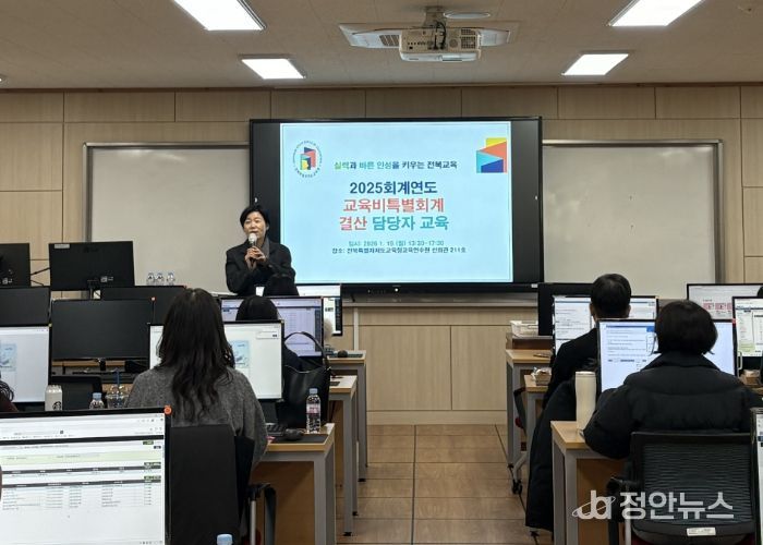 정안뉴스 안정주 기자 | 전북특별자치도교육청은 19일 전북교육청교육연수원에서 본청과 직속기관, 교육지원청 소속 결산업무 담당자 60여 명을 대상으로 2025회계연도 결산업무 연수를 실시했다.