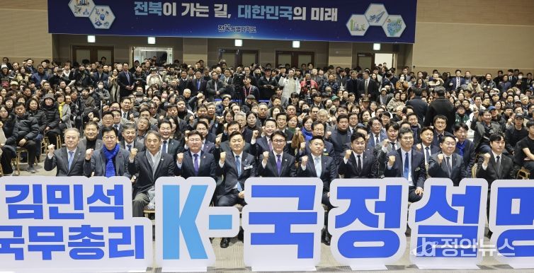 정안뉴스 안정주 기자 | 김민석 국무총리가 19일 전북대학교 JBNU컨벤션센터에서 열린 ‘K-국정설명회’에 참석해 전북을 ‘미래산업의 테스트베드’로 육성하겠다는 정부의 의지를 재확인했다. 국민주권정부 출범 6개월을 맞아 전국을 순회하며 진행되는 이번 행사에는 도민 500여 명이 참석해 정부와 직접 소통하는 시간을 가졌다.