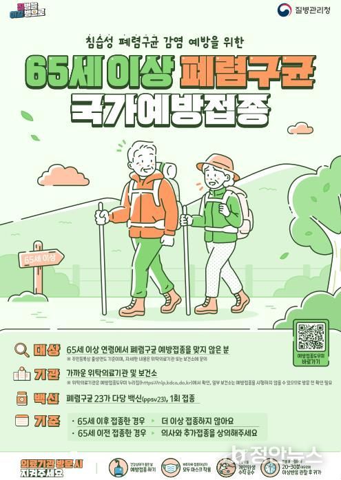 폐렴은 국내 사망 원인 중 높은 비중을 차지하는 질환이지만 65세 이상 연령대에서 평생 단 1회 접종만으로도 폐렴구균에 의한 침습성 감염증(패혈증, 뇌수막염 등)을 50~80%까지 효과적으로 예방할 수 있어 적기 접종이 무엇보다 중요하다.