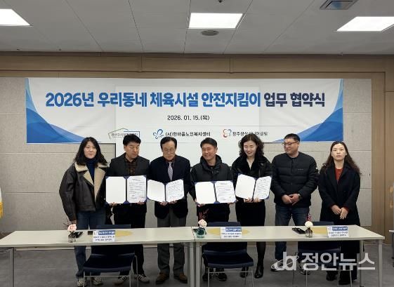 정안뉴스 안정주 기자 | 광주광역시광산구시설관리공단은 1월 15일 공단 회의실에서 노인일자리 사업을 전문으로 추진하고 있는 (사)한마음노인복지센터, 광주광산시니어클럽과 함께 지역사회 노인일자리 창출과 사회활동 지원사업을 위한 체육·교통시설 안전지킴이 업무협약을 체결했다.