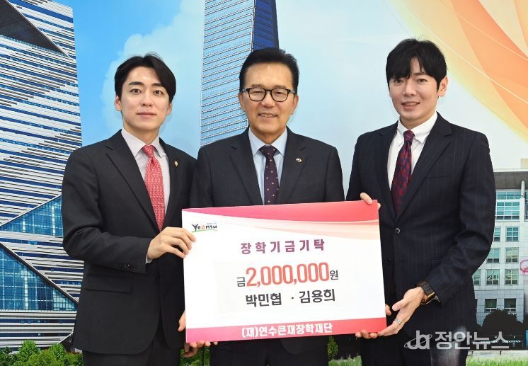 정안뉴스 안정주 기자 | 연수큰재장학재단은 지난 20일 박민협 연수구의회 의원과 김용희 인천시의회 의원이 지역 인재 육성과 교육 발전을 위해 200만 원을 기탁했다고 밝혔다.