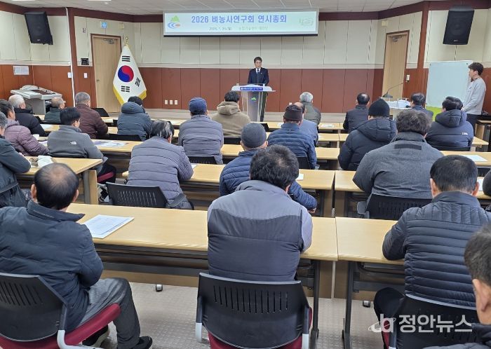 정안뉴스 황도연 기자 | 청양군은 26일 군 농업기술센터 대강당에서 청양군 벼농사연구회(회장 우영식) 회원 60여 명이 참석한 가운데 연시총회를 성황리에 개최했다.