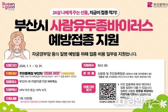 이 사업은 2024년 '부산시 사람유두종바이러스 예방접종 지원에 관한 조례' 제정으로 시작됐으며, 매년 새로운 26세 여성을 대상으로 한다.