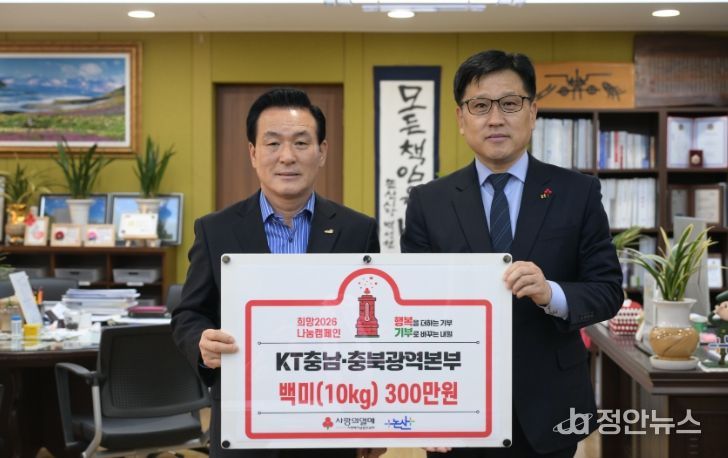 정안뉴스 황도연 기자 | KT충남·충북광역본부가 지난 28일 어려운 이웃을 위해 총 3백만원 상당의 백미(10kg) 95포를 기탁하며 뜻깊은 나눔을 실천했다.