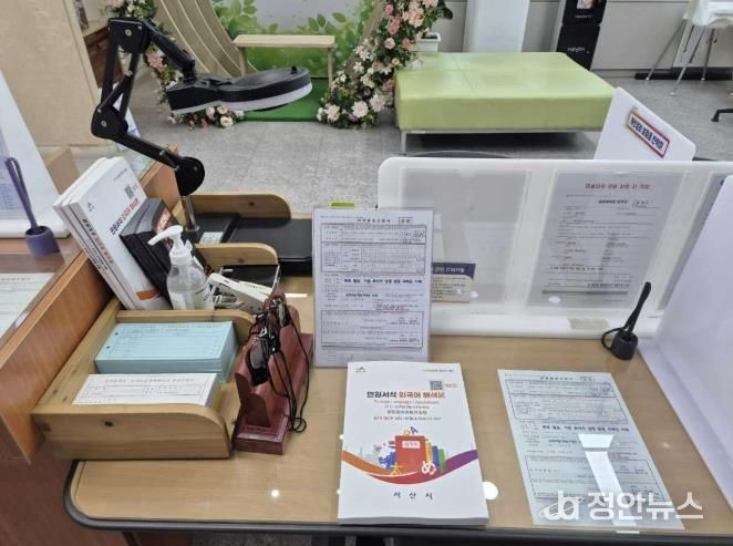 정안뉴스 황도연 기자 | 충남 서산시는 종합민원실 및 읍면동 행정복지센터에 민원 서식 외국어 해석본을 배포했다고 밝혔다.