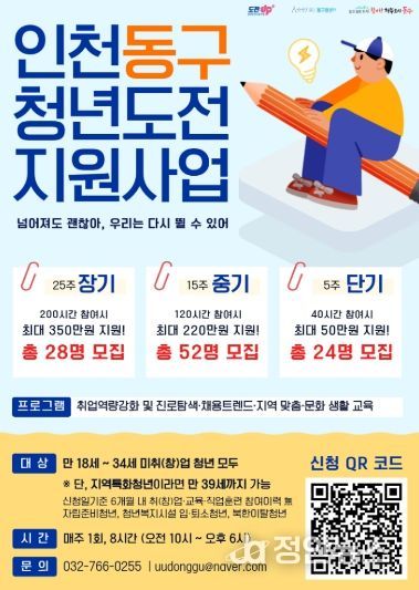 정안뉴스 안정주 기자 | 인천 동구는 구직단념청년 등 장기간 미취업 상태에 놓인 청년 재도약을 위한‘2026년 청년도전지원사업’을 추진한다고 밝혔다.