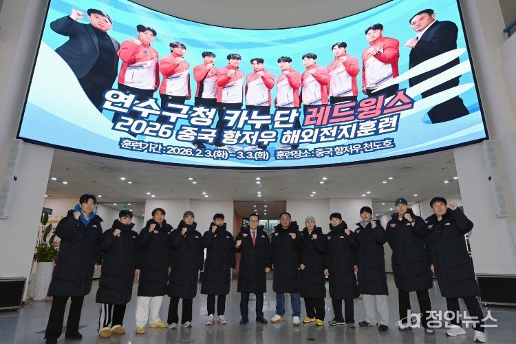 정안뉴스 안정주 기자 | 연수구의 직장운동경기부 카누팀 ‘레드윙스’가 2026년 시즌 새로운 도약을 위해 중국 항저우로 동계 전지훈련을 떠났다.