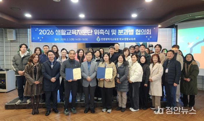 정안뉴스 안정주 기자 | 인천광역시교육청은 3일 샤펠드미앙에서 생활교육자문단 50명을 대상으로 ‘2026년 위촉식 및 분과별 협의회’를 개최했다.
