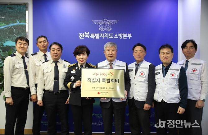정안뉴스 안정주 기자 | 전북특별자치도소방본부는 4일 도청에서 대한적십자사 전북지사에 2026년도 대한적십자사 특별회비 300만원을 전달했다.