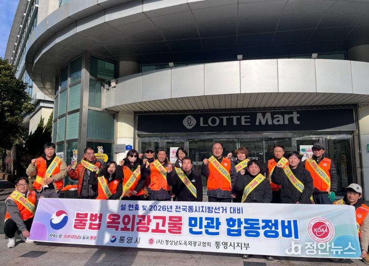 정안뉴스 김재홍 기자 | 통영시는 설 연휴를 맞아 고향을 찾는 귀성객과 관광객들에게 쾌적하고 안전한 거리 환경을 제공하기 위해 지난 4일 경상남도 옥외광고협회 통영시지부와 함께 불법 옥외광고물 일제 정비 활동과 근절 캠페인을 실시했다.