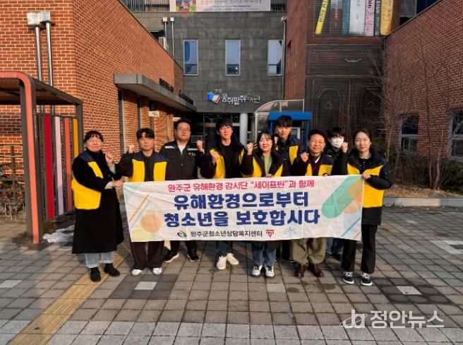 정안뉴스 안정주 기자 | 완주군과 완주군 유해환경감시단 ‘세이프틴’이 지난 4일, 겨울방학 기간 청소년들의 일시적 일탈을 예방하고 안전한 생활 환경을 조성하기 위해 이서 콩쥐팥쥐도서관 인근 번화가에서 청소년 유해환경 민·관 합동 점검단속을 실시했다.