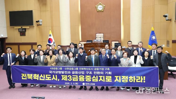 이에 전주시의회는 ▲전북혁신도시의 금융중심지 조속 지정 ▲서울·부산 금융중심지와의 기능적 분업·연계 구조 구축 ▲금융기관 집적과 전문 인력 양성 등 국가 차원의 종합 지원 체계 마련을 촉구했다.