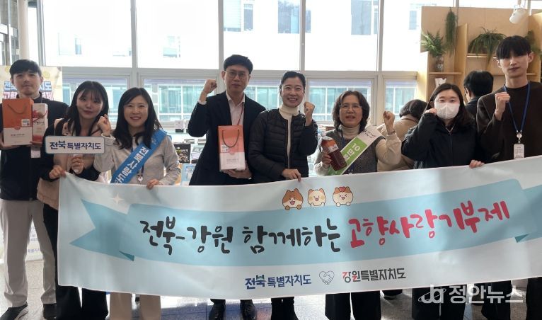정안뉴스 안정주 기자 | 전북특별자치도는 설 명절을 맞아 4일 서울 용산역과 5일 강원특별자치도청을 차례로 방문해 고향사랑기부제와 전북사랑도민증을 연계한 ‘찾아가는 현장 홍보’를 실시했다.