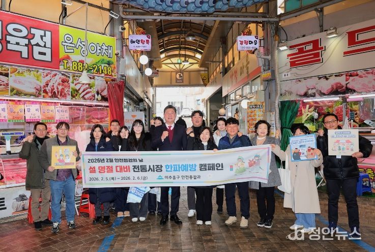 정안뉴스 안정주 기자 | 인천 미추홀구는 설 명절을 앞두고 5일부터 6일까지 총 이틀간 관내 전통시장을 방문해 ‘동절기 한파 예방 캠페인 및 화재 대비 집중 안전 점검’을 실시한다.