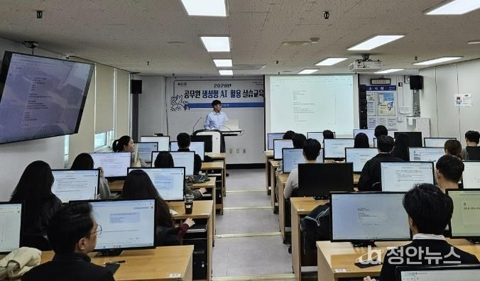정안뉴스 황도연 기자 | 아산시는 디지털 전환 시대를 발맞춰 행정 업무 혁신을 추진하기 위해 지난 2월 2일부터 시청 별관 전산교육장에서 공무원 500여 명을 대상으로 ‘생성형 AI 활용 실무 교육’을 실시하고 있다고 밝혔다.