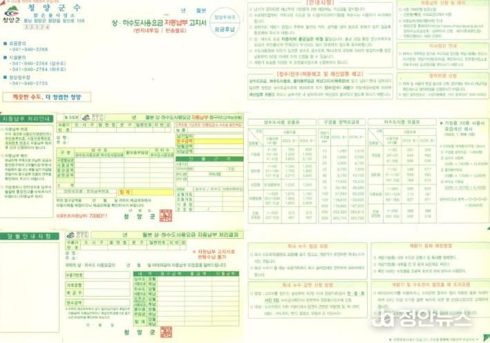 정안뉴스 황도연 기자 | 청양군이 군민의 소중한 개인정보를 보호하고 고지서 가독성을 높이기 위해 상·하수도 요금 고지서를 기존 지로형에서 ‘봉합형’으로 전면 개편한다.
