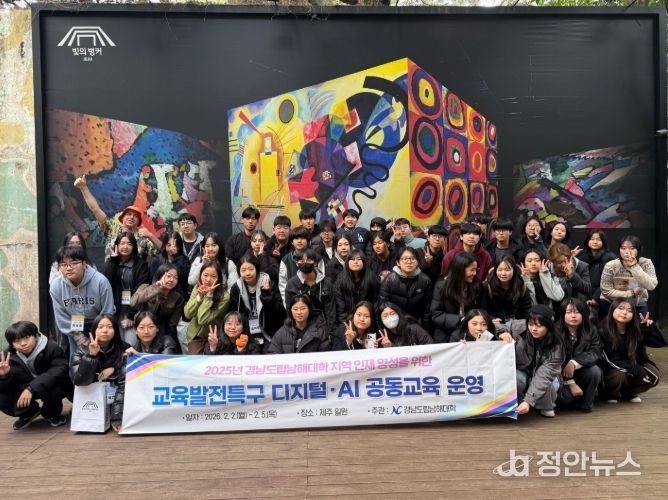 정안뉴스 김재홍 기자 | 경남도립남해대학은 관내 중학생을 대상으로 2일부터 5일까지 제주 일원에서 ‘지역 맞춤형 디지털·인공지능(AI) 공동교육 프로그램’을 운영했다.