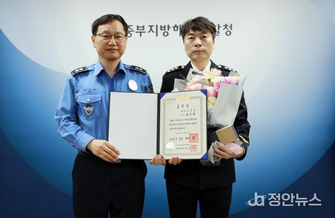 이날 수여식에서는 중부해경청 청문감사 담당관실 소속 김기태 경정이 APEC 정상회의 개최 유공을 인정받아 대통령 표창을 수여받았다.