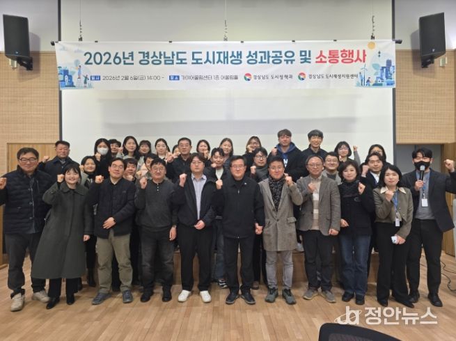 정안뉴스 김재홍 기자 | 경상남도는 6일 함안군 가야어울림센터에서 도내 도시재생사업의 성과를 공유하고 시군 간 소통을 강화하기 위한 ‘2026년 경상남도 도시재생사업 성과공유 및 소통행사’를 개최했다고 밝혔다.