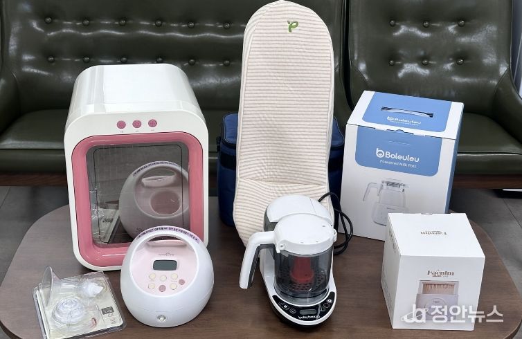 대여 물품은 유축기(25개)와 수유 시트(10개), 분유 셰이커(5개), 분유 포트(5개), 이유식 제조기(10개), 젖병소독기(12개) 등 총 6종으로 6개월까지 대여할 수 있다. 대기자가 없는 경우에는 3개월 연장도 가능하다.