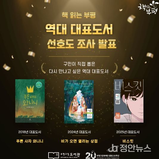 정안뉴스 안정주 기자 | 부평구립도서관은 ‘책 읽는 부평’ 15주년을 기념해 실시한 ‘다시 만나보고 싶은 역대 대표도서’ 구민 선호도 조사 결과를 발표했다.