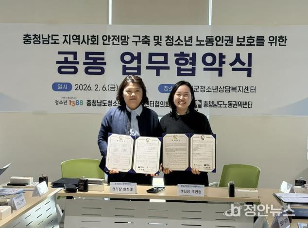 충남 시·군청소년상담복지센터 공동업무협약의 일환으로 진행된 이번 협약은 청소년 노동권익 증진과 인권 향상을 목표로, 지역사회 청소년 안전망을 강화하고 노동법 교육과 상담, 권리구제 지원 등 실질적인 협력체계를 구축하기 위해 마련됐다.