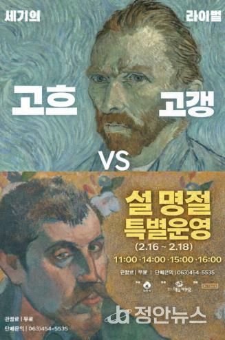 정안뉴스 안정주 기자 | 군산예술의전당이 현재 선보이는 기획전시 세기의 라이벌 '고흐 VS 고갱'을 설 연휴인 2월 16일부터 18일까지 휴관 없이 운영한다.