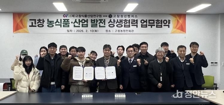 정안뉴스 안정주 기자 | (재)고창식품산업연구원과 고창청년벤처스가 지난 10일 저녁 고창군농업인회관에서 고창군의 지속 가능한 발전과 청년 창업 생태계 활성화를 위한 업무협약(MOU)을 체결했다고 밝혔다.
