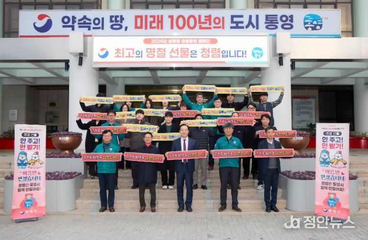 정안뉴스 김재홍 기자 | 통영시는 설 명절을 앞두고 공직사회의 청렴 의식을 확산하고 공직자 행동강령 준수를 당부하기 위해 지난 10일 1청사 현관에서‘2026년 설명절 대비 청렴통영 캠페인’을 실시했다.